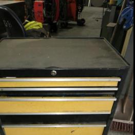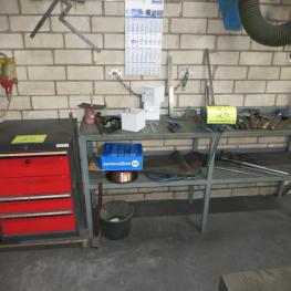 74 Werkstattschrank u. Werkbank m. Inhalt