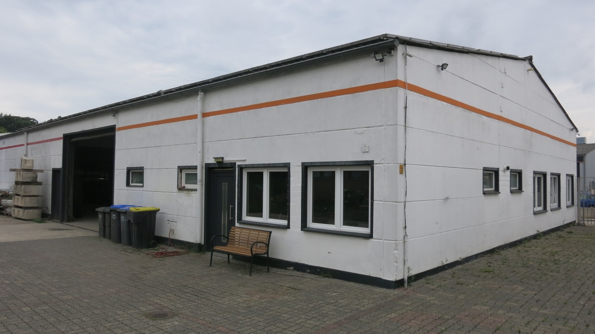 Das Grundstück ist derzeit mit einer Lagerhalle aus dem Jahr 1983 inkl. 80 m² Bürofläche bebaut. Außerdem ist im hinteren Teil des Grundstücks ein Wohngebäude im Jahr 1987 errichtet worden. Zu dem Wohngebäude gehört linksseitig eine Garage für mindestens zwei PKW’s.